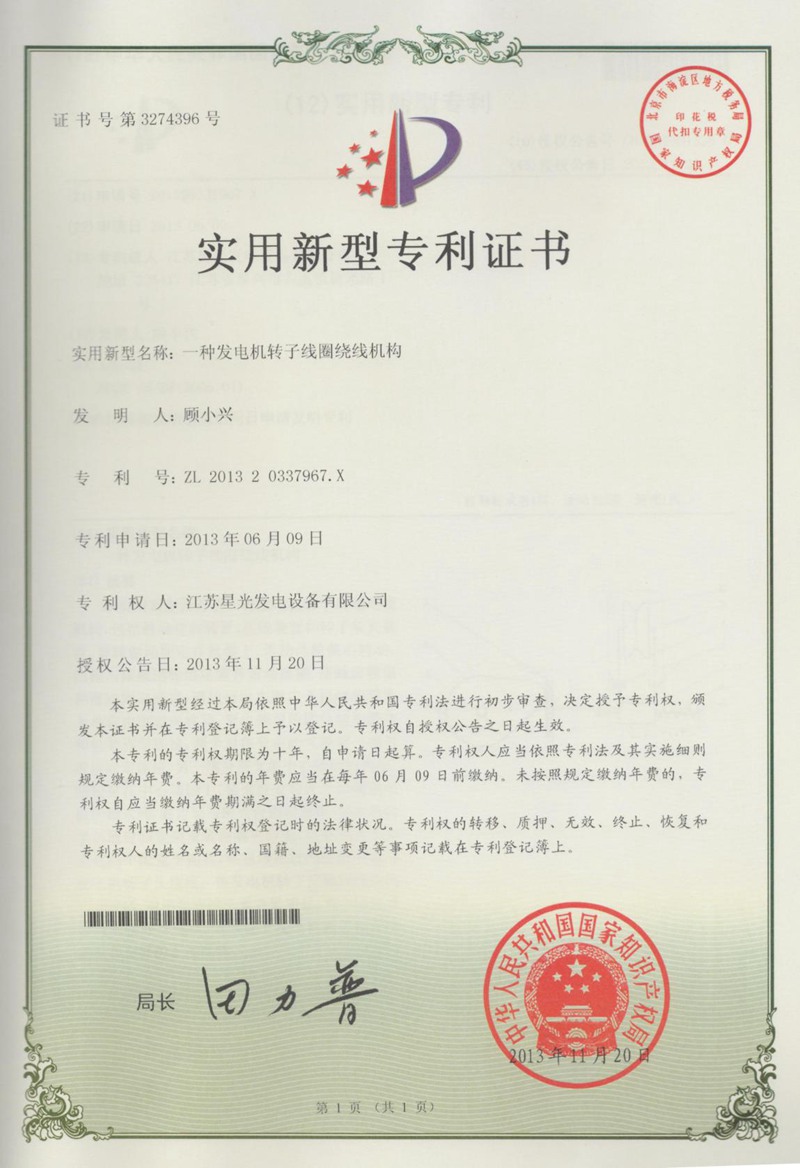 一種發(fā)電機轉子線圈繞線機構-專利證書